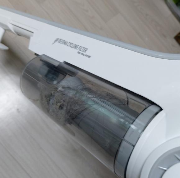 제가 배송을 받고 포장을 뜯다가 바닥에 널 부러져 있는 스티로폼 조각들을 치우기 위해 바닥청소를 시험삼아 해 보았어요. 역시 유선청소기 답게 힘은 정말 좋네요. 유명한 타브랜드 보다 흡입력부분에서 더 좋은거 같아요. 물론 유선제품하고 무선제품하고 비교한다는게 조금 그렇지만요.