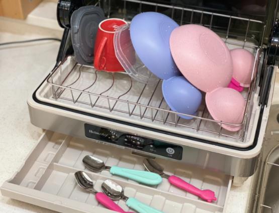 설거지거리를 하루종일 쌓아두지 않는한 대충 4인가구 기준으로 사용하기 괜찮다고 봐요. 어른들의 식기나 아이들의 식기 그리고 주방에서 사용하고 있는 조리용 도구들도 살균건조할 수 있어서 위생적이면서 좋답니다.