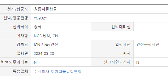 관세청 유니패스 조회를 하면 나와있습니다.